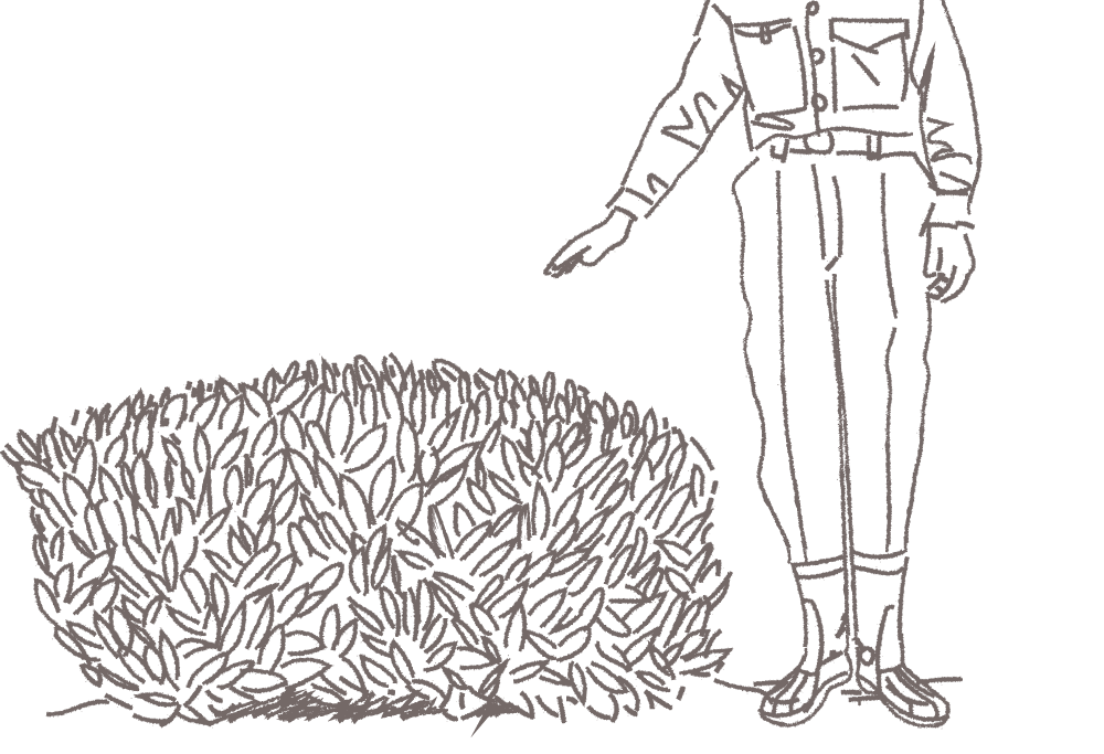 茶摘みの後、茶葉がなくなった木を膝の高さまで刈り、1一年かけて伸ばす。途中ハサミを入れず、そのまま伸ばすことによって、肉厚な葉が育つ。
