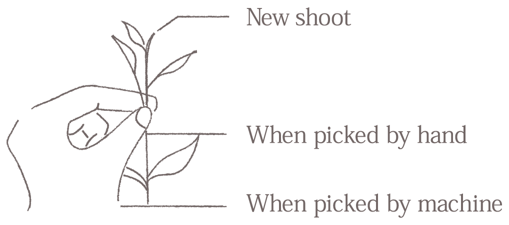 One core, two leaves. Only the tender parts of the shoots are hand-picked, one leaf at a time.